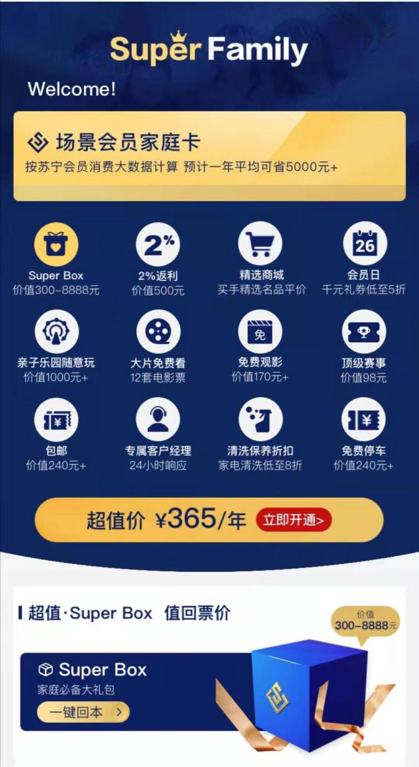“在設計這款會員產品時,我們希望能觸達每一位家庭成員。”蘇寧相關負責人解釋說:“比如媽媽,她用的更多的可能是購物,那么家庭會員有購物2%的返利;爸爸可能喜歡體育,我們有頂級賽事的觀賽劵贈送;對于孩子,我們提供了免費游玩樂園、免費看電影、免費停車等福利,讓全家人盡情享受親子時光。”