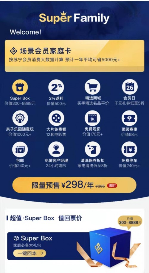 年初,蘇寧易購推出 S UPER VIP專屬會員特權,母嬰家庭只需辦理價值149元的 Super VIP會員卡,再加150元,即最高花費299元,就能在蘇寧紅孩子游樂不限時間、不限次數(shù)的玩上一整年。貫穿全年的紅粉會員答謝會,通過海量母嬰正品、專業(yè)的育嬰師服務和特色會員福利活動圈粉超千萬。而最新升級的蘇寧Super Family會員更是以承包一家人的衣食住行為出發(fā)點,融合了蘇寧體育、蘇寧影城、蘇寧金融、蘇寧紅孩子、蘇寧廣場等業(yè)態(tài),共12項特權,發(fā)力會員場景零售,打造了完善的會員生態(tài)服務。