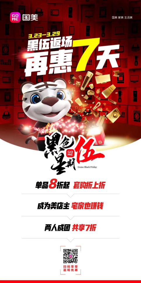 據了解,3月23日-3月29日,國美零售“黑伍”返場,再惠7天。在此期間,國美多種優惠玩法悉數上線。用戶將不僅享受單品8折起、套購折上折的優惠,成為美店主,還能宅家賺錢,享受商品返利。此外,還有兩人成團,共享7折等,快來國美美店廚飲專場選購吧。
