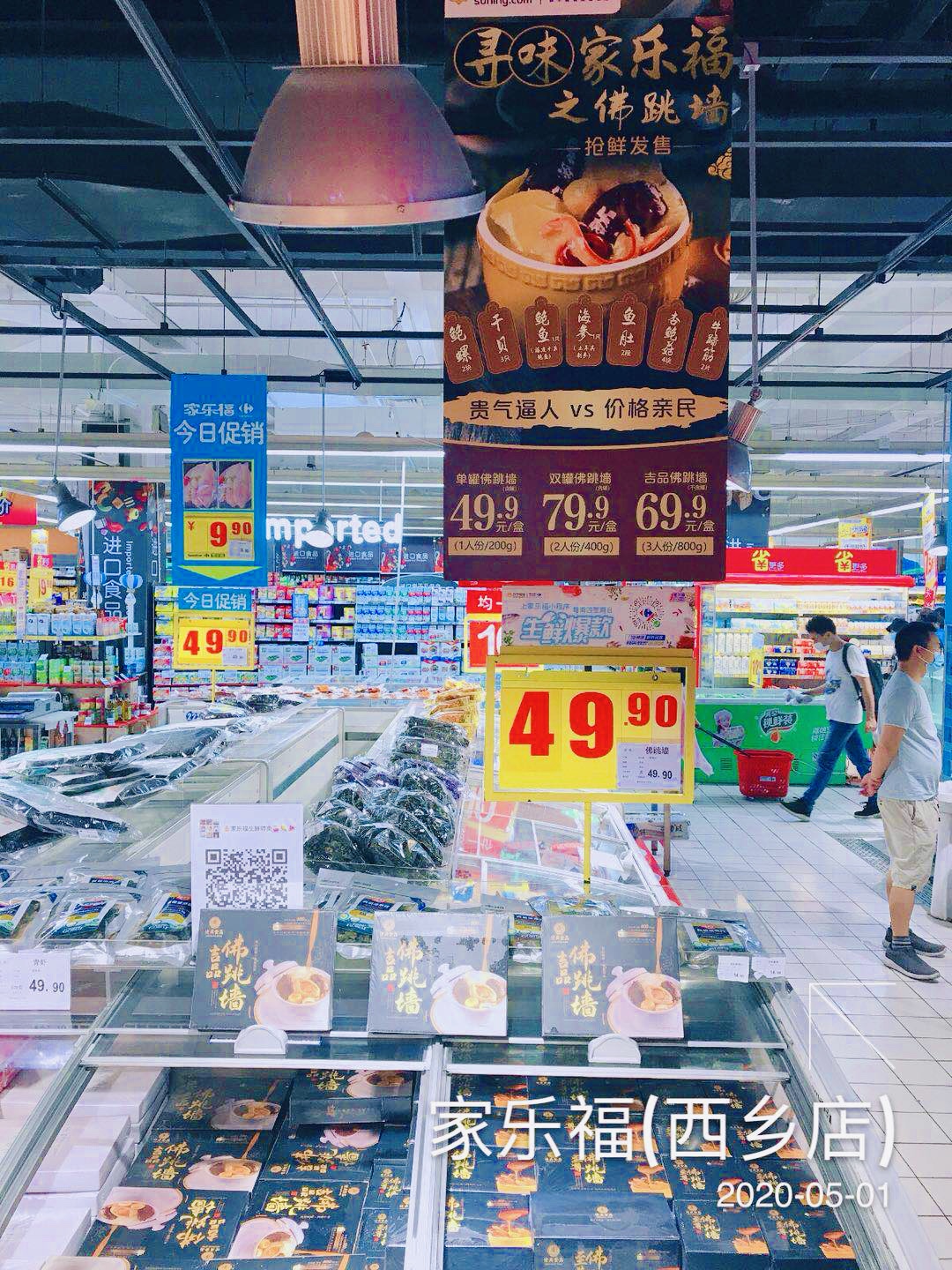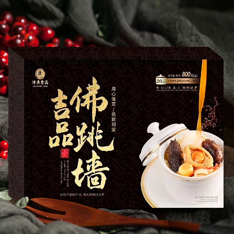 家樂福此番以“佛跳墻”打響頭炮。古人曰:“壇啟葷香飄四鄰,佛聞棄禪跳墻來”。佛跳墻作為滿漢全席的主菜之一,匯聚鮑魚、海參、魚肚、鮑螺、干貝、牛蹄筋、杏鮑菇、素翅等數十種珍貴食材煨于一蠱,吃起來軟嫩柔潤,湯汁濃郁鮮香。