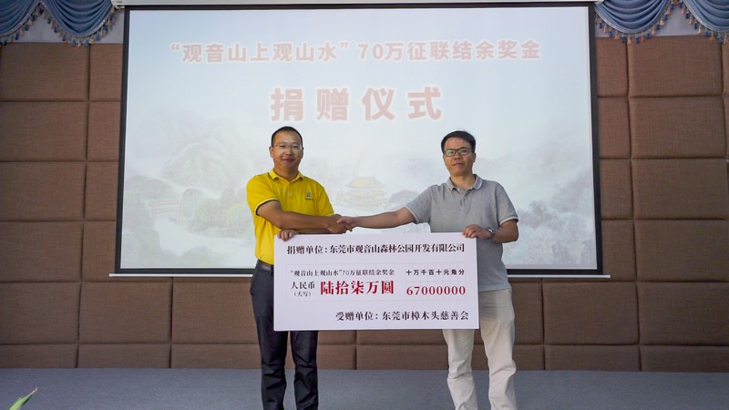 根據征稿啟事的規定,組委會將給予被評選出的優秀獎下聯每人2000元獎勵。由于最佳下聯空缺,以至征聯獎金結余了67萬元。經組委會研究決定,將頒獎后結余的67萬元獎金,悉數一次性捐給東莞市樟木頭慈善會,并定向用于樟木頭鎮敬老院文化藝術及公益活動項目,以表達征聯的誠意和決心。