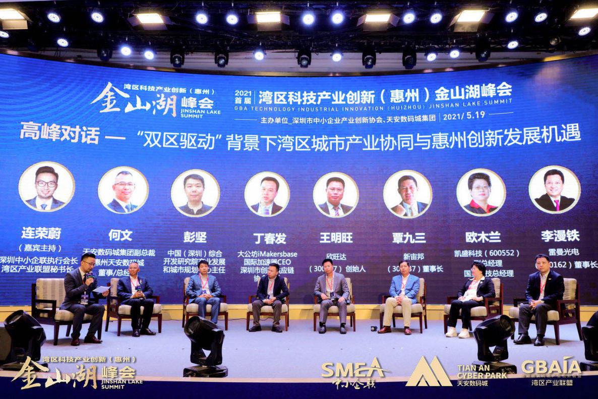 “‘雙區’建設是國家領導人和黨中央部署的重大國家戰略,作為粵港澳大灣區重要節點和深圳都市圈重要成員,全力支持、積極融入既是惠州鮮明的政治態度,也是惠州發展的必然抉擇。相信在惠州市及各級政府部門支持下,深圳市中小企業產業創新協會、天安數碼城集團強強攜手,與各方合作伙伴共同努力,通過每年一屆的“灣區產業創新(惠州)金山湖峰會”深入落實創新驅動發展戰略,匯聚粵港澳大灣區產業創新資源,深化粵港澳創新合作,助力惠州與灣區城市間的產業創新與協同發展。