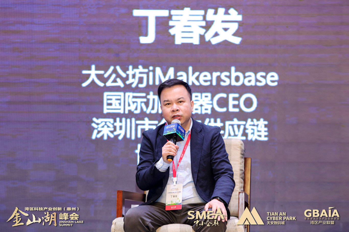 大公坊iMakerbase國際加速器CEO、深圳市創客供應鏈協會會長丁春發說道“惠州的定位可以用一句話概括,就是引進來,走出去。目前大灣區定位非常高,它是國際化的大灣區,對標的是硅谷灣區。對于惠州而言,未來惠州可以對標無錫,可以在產業供應鏈領域引進更高水準的創新企業。”