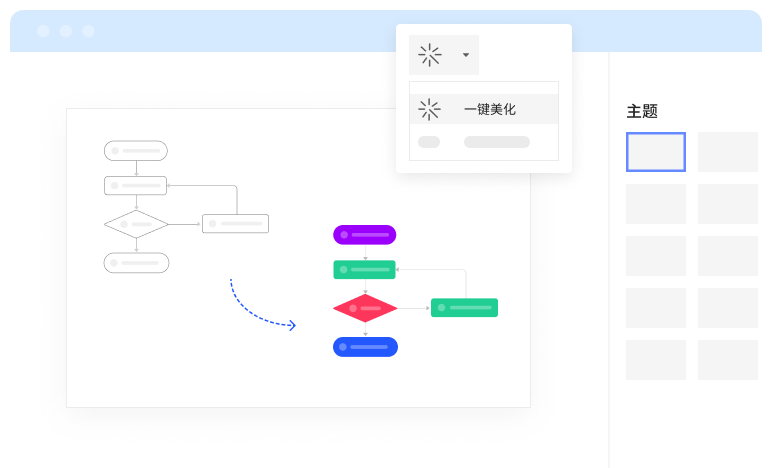 為了賦能繪圖效率,億圖圖示11.0版本還新增了“一鍵美化”功能,進一步提升產品的易用性,真正做到“把簡單留給用戶,把復雜留給自己”。