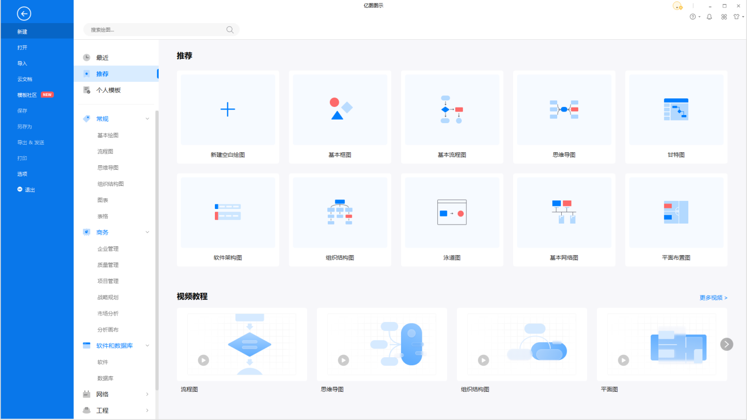 此外,新版本還在推薦頁放置了熱門圖形圖表的教程視頻,能夠幫助用戶快速學習,輕松掌握繪圖技巧。