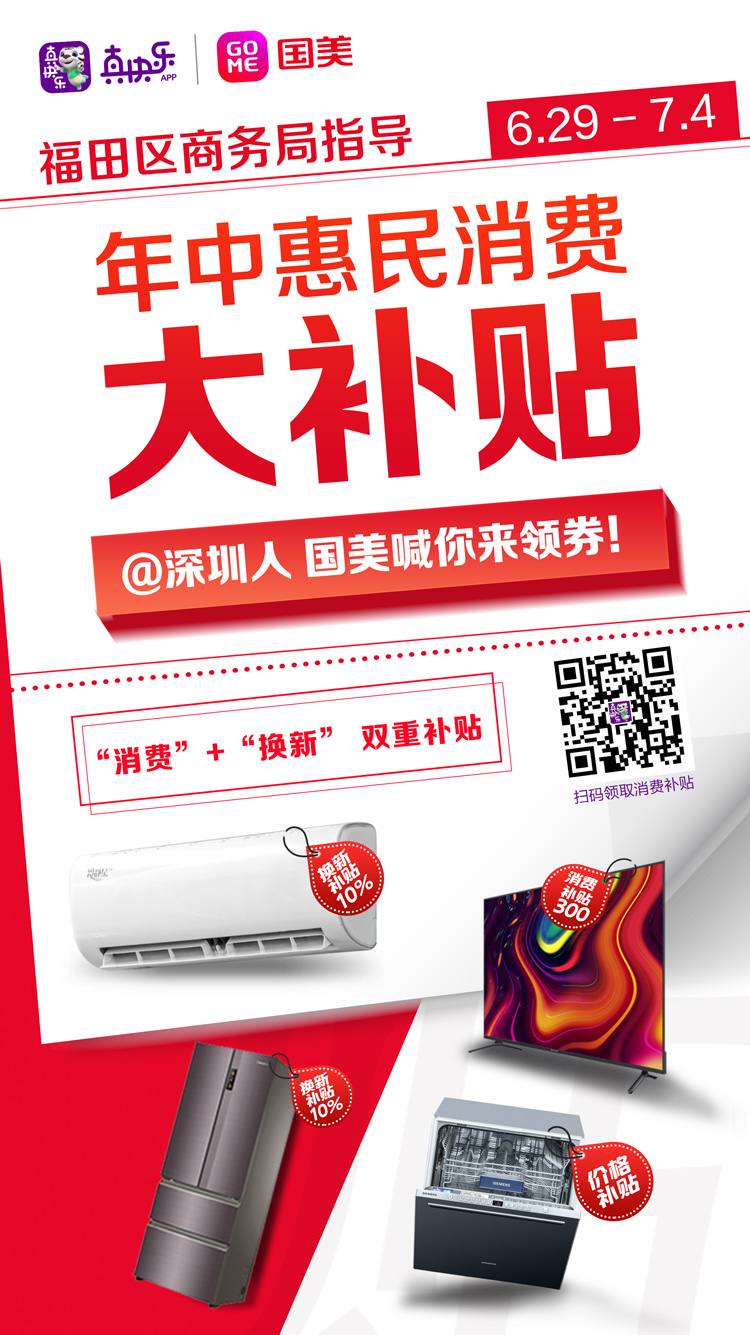 據悉,為獻禮建黨100周年,在深圳市福田區商務局的指導下,深圳國美和“真快樂”APP誠意滿滿的推出了“年中惠民消費大補貼”活動,國美這次“年中消費大補貼”將從6月21日起一直延續到7月4日,4500萬補貼發放,助力深圳地區消費者升級品質生活。而且所有活動商品原有低價基礎上進行補貼直降,還有超多驚喜好價等你來搶,此波羊毛絕對放心薅,一起來看看吧!