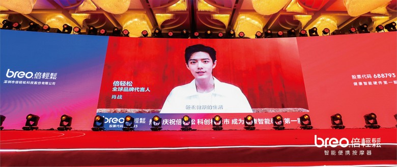 在7月14日倍輕松的上市答謝晚會上,眾多核心合作伙伴紛紛發來祝福,倍輕松全球品牌代言人肖戰發來賀電,共同祝賀倍輕松成功上市,成為健康智能硬件第一股。倍輕松董事長馬學軍談到了倍輕松成立的初心——創造中國品牌,希望通過三個十年將中國品牌倍輕松打造成全球第一品牌。馬學軍談到,倍輕松在第一個十年打造品牌基礎,第二個十年做到行業第一,第三個十年沖向世界,讓中國品牌被世界所熟知。