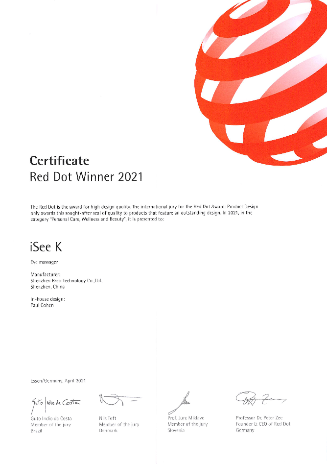 2021年倍輕松眼部按摩器iSee K榮獲紅點設計獎