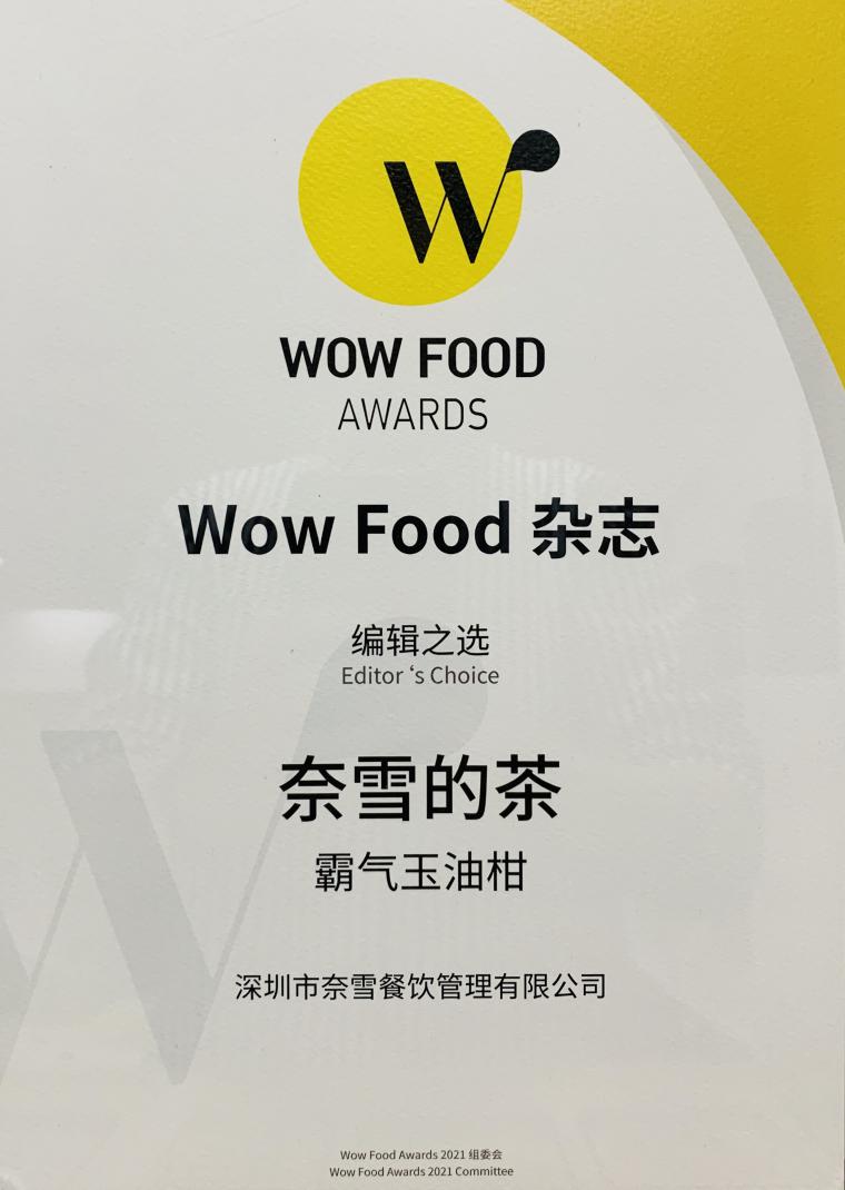 奈雪的茶憑借今年火遍全國(guó)的爆款產(chǎn)品“霸氣玉油柑”,獲得了由亞太地區(qū)極具行業(yè)影響力的食品行業(yè)盛會(huì)之一——FBIF食品飲料創(chuàng)新論壇頒發(fā)的Wow Food雜志“編輯之選”榮譽(yù)稱(chēng)號(hào),成為FBIF首度推出雜志即納入其中的全球新品案例之一。