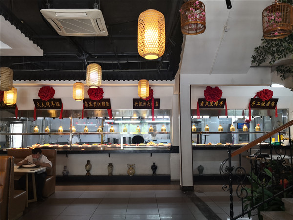 尤其扎眼的,正對大門的明廚亮灶上的幾塊牌匾,一下子就勾起人的食欲:老式熏豬手、手工燒老雞、烏蘇里江鰉魚、興凱湖大白魚、查干湖胖頭魚、火夫灶羊腿。這些都是地道的東北味啊!據(jù)介紹,老板湯長明是黑龍江“龍菜”系傳承領(lǐng)軍人物,祖孫四代傳承東北菜廚藝,現(xiàn)在關(guān)東大院餐飲集團(tuán)董事長。當(dāng)然,許多大家耳熟能詳?shù)拇蟊姴艘矐?yīng)有盡有,如:殺豬菜、小雞燉蘑菇、得莫利燉魚、大鵝燉寬粉、黑皮肘子、酸菜粉、地三鮮、東北鹵水點(diǎn)豆腐、金湯遼參、黃魚燒土豆、紅燒肉黃金勾......看得人口水直冒。加之,整個(gè)門店的布局也十分特別,一樓明廚亮灶之外,主要是大堂散座,周邊還有不少的書籍、酒架;二樓主要是包間,簡潔明亮。可以說,在此可以感受到一股濃濃的關(guān)東風(fēng)情。