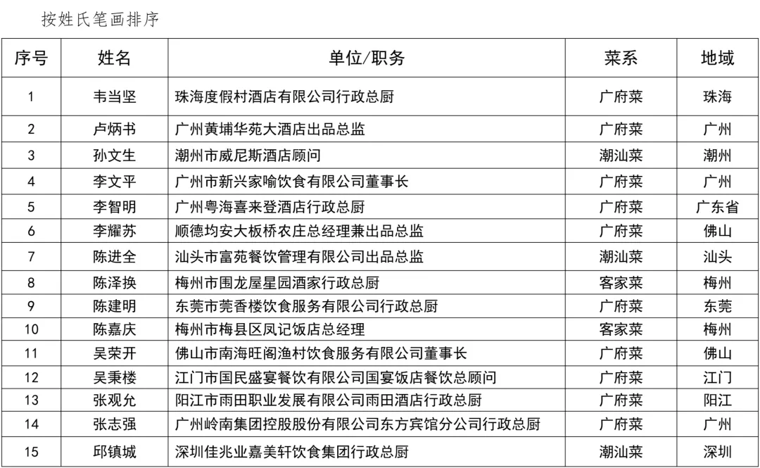 據悉,“廣東省‘粵菜師傅’星級名廚認定評選活”由廣東省三項工程領導小組辦公室啟動,省“粵菜師傅”人才培養與評價聯盟具體組織評選。據廣東省人社廳二級巡視員、職建處處長劉正讓介紹,“粵菜師傅”工程開展三年多來,培養了一大批“粵菜師傅”新秀,也培育了一大批“粵菜師傅”名廚,開展這次星級“粵菜師傅”評選,就是要樹立“粵菜師傅”標桿,評出業界公認的技藝高超、業績突出的“徳技雙馨”名廚。1-3星由各地市組織評選,4-5星由廣東省“粵菜師傅”人才培養與評價聯盟組織實施,聯盟成立了組委會,并組建了一個25人的評審專家組,設計了執行方案。通過資料審核和第一階段的認定評分,110名大廚脫穎而出,其中60名為四星名廚,50名從業時間長、業績突出、社會知名度高的大廚將經過“技能展示及答辯”階段,角逐30個五星名額,其余20名自動成為四星名廚。
