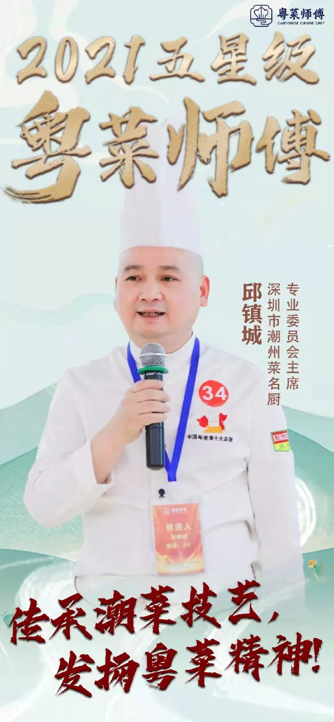 此次評選活動,來自深圳市潮州菜專業委員會的邱鎮城會長代表深圳餐飲界出戰,最終獲得“五星級粵菜師傅名廚”榮譽稱號,是深圳潮州菜系唯一獲此殊榮的五星級名廚。邱鎮城學做潮汕菜30年,是深圳“精細潮州菜”的領軍人物,曾在米盧時代的國家足球隊擔任大廚,現任深圳市潮州菜名廚委員會主席,其烹飪技術屢獲好評,是中國粵港澳十大總廚,還是廣東十大南粵廚王、深圳市十佳行政總廚。邱鎮城在推廣、宣傳潮汕美食的同時,將潮汕文化推向首都、傳播全國,體現的是潮人愛拼敢贏、吃苦耐勞的精神。