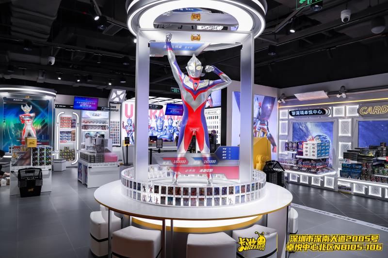 卡游動漫一貫以來打造親子互動體驗的愿景,在“趣發現、去成就”的道路上始終前進,不斷為每一個卡牌愛好者和親子家庭帶來更多的歡樂、營造更多的幸福和構筑更多的溫暖。作為城市首家線下直營店的卡游北京富力廣場店和卡游深圳卓悅中心店就是典型代表,他們不僅完美繼承了如“奧特曼1:1等身立像圓桌”和“英雄對決專區”等興趣社交區域,還配合商場“新時尚、新生活、新主張”的理念,在多種玩法的加持下,將藝術、美學、生活融于一體,擁有無限的探索可能。