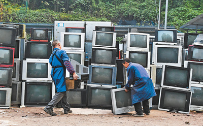 一臺舊電視,在重慶的電子廢棄物處理廠,可以被拆解成23種部件。用一位業內人士的話說,“除了灰塵之類不能用,其他都能變廢為寶”。