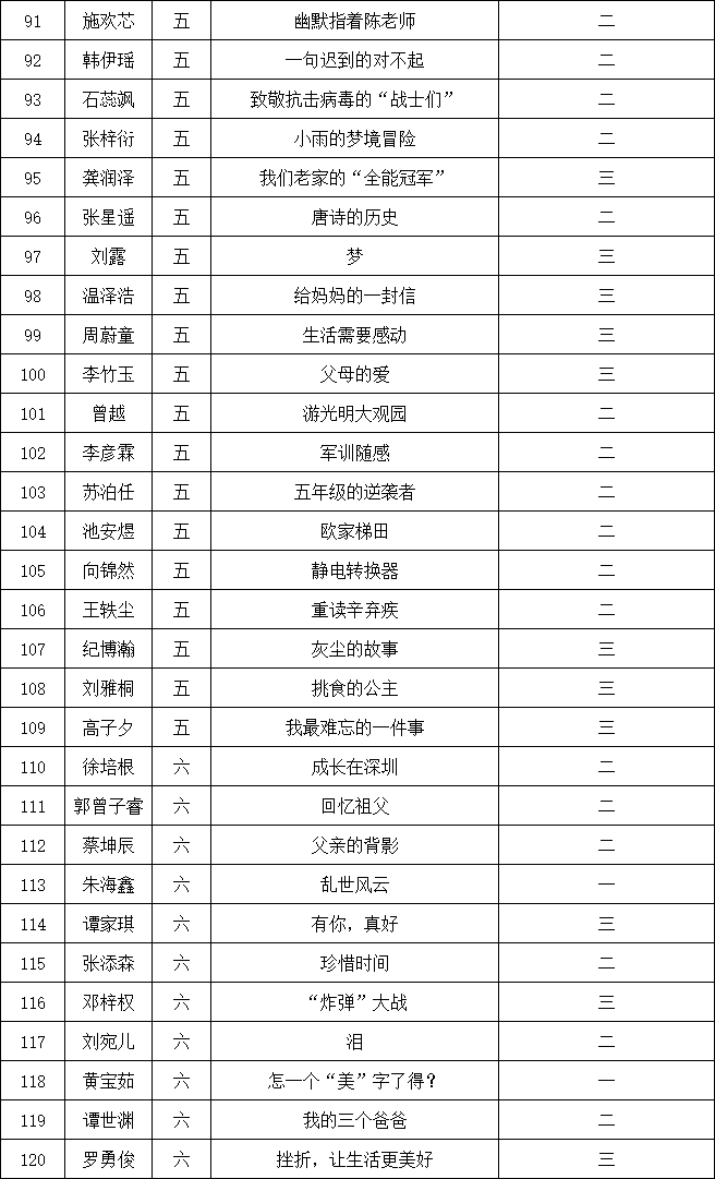自2021年1月,活動征稿啟動以來,獲得了深圳市廣大中小學生、教師、文學愛好者的熱烈響應積極參與,吸引了深圳百余所學校的上萬人關注報名。現公布南山實驗教育集團前海港灣學校校園專場晉級復賽名單如下: