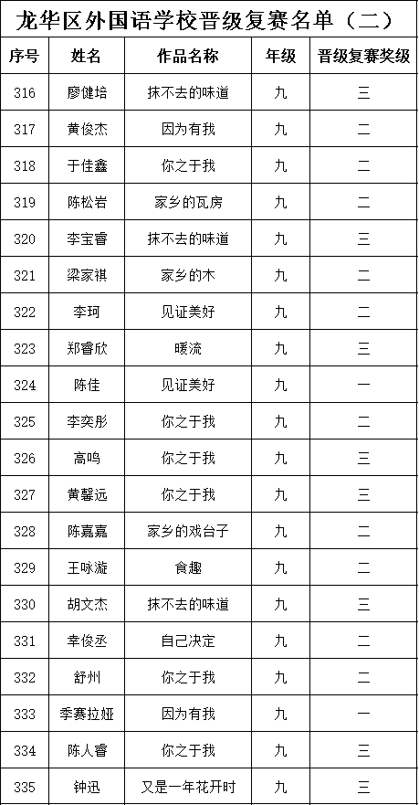 自2021年1月,活動征稿啟動以來,獲得了深圳市廣大中小學生、教師、文學愛好者的熱烈響應積極參與,吸引了深圳百余所學校的上萬人關注報名。現公布龍華區外國語學校專場晉級復賽名單如下: