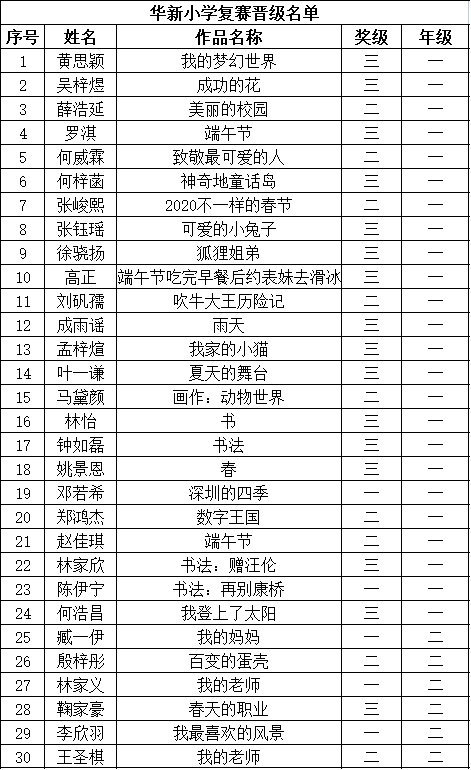 自2021年1月,活動征稿啟動以來,獲得了深圳市廣大中小學生、教師、文學愛好者的熱烈響應積極參與,吸引了深圳百余所學校的上萬人關注報名。現公布福田區華新小學晉級復賽名單如下: