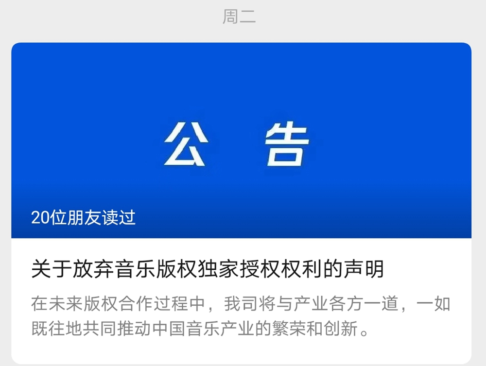 (相關報道:發聲明放棄音樂版權獨家授權,騰訊為啥這樣做)